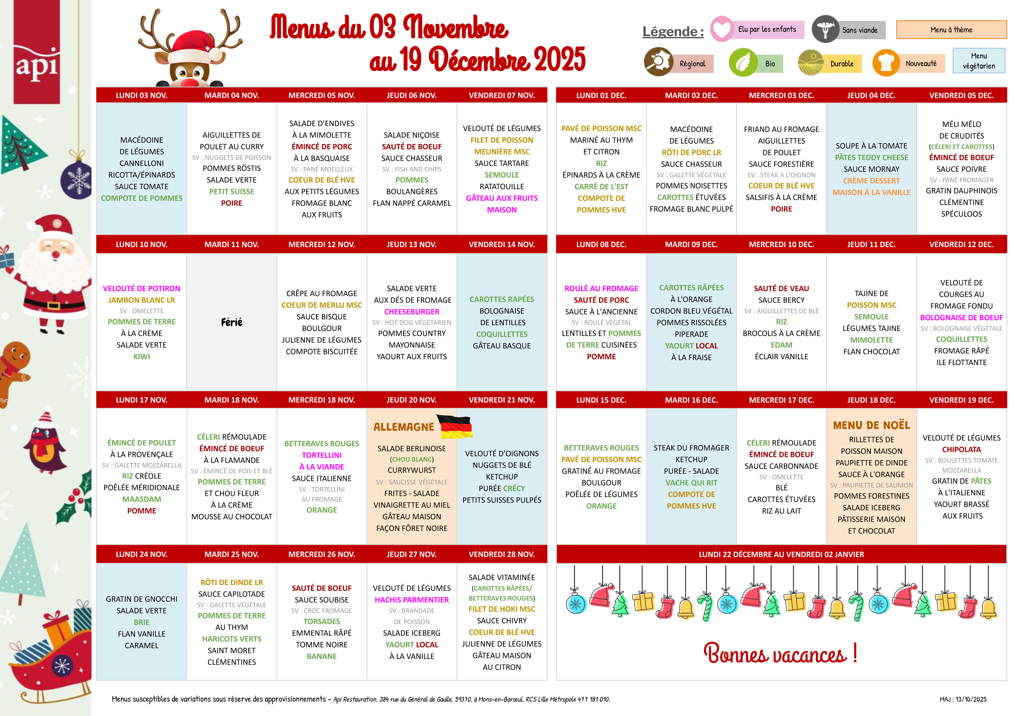 Concernant les réservations des repas des écoles maternelle et élémentaire, veuillez contacter le service enfance jeunesse