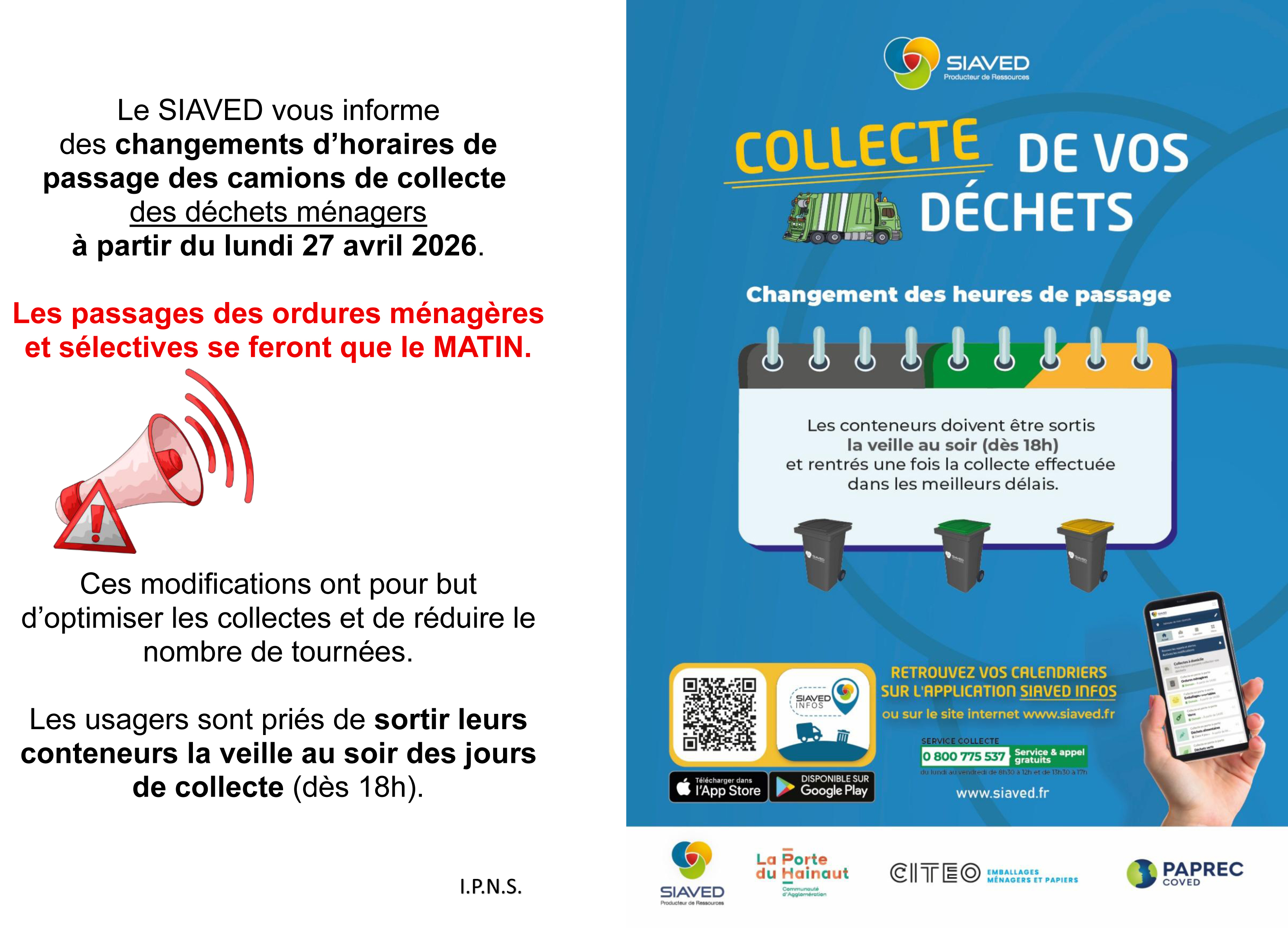 2. SIAVED - changements d'horaires de passage des camions de collecte