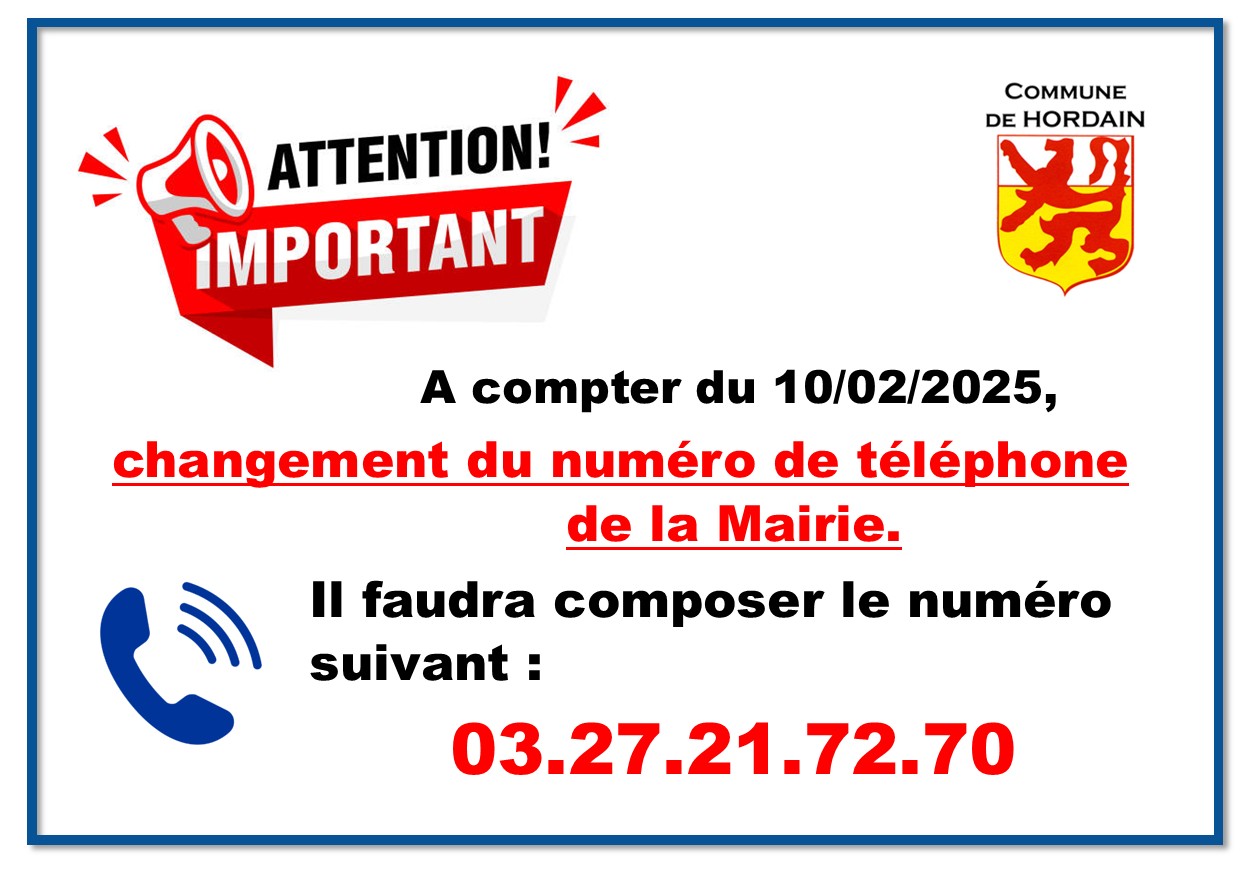 - Changement de N° de téléphone de la Crèche Les Lutins d'Hordain