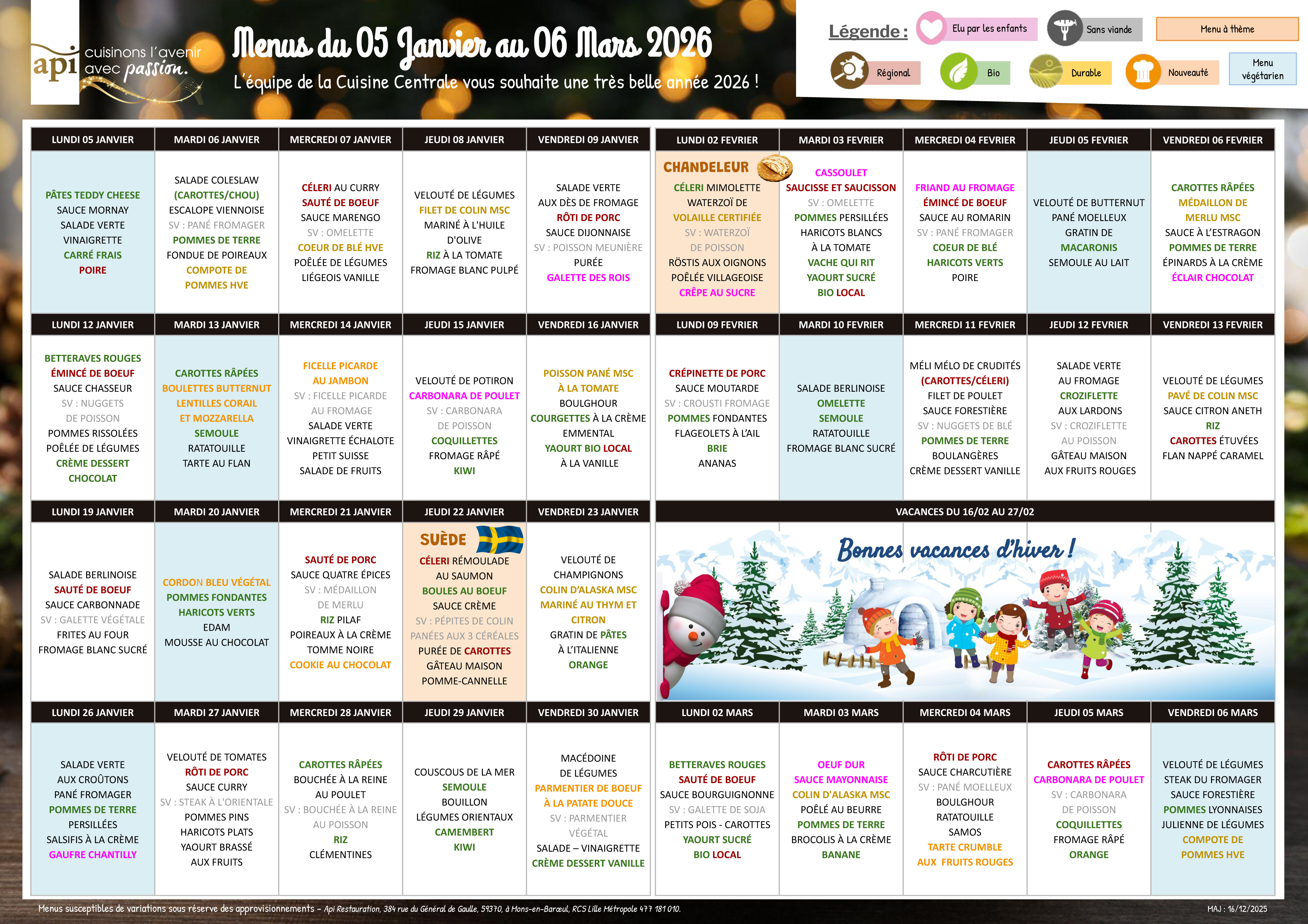 Concernant les réservations des repas des écoles maternelle et élémentaire, veuillez contacter le service enfance jeunesse