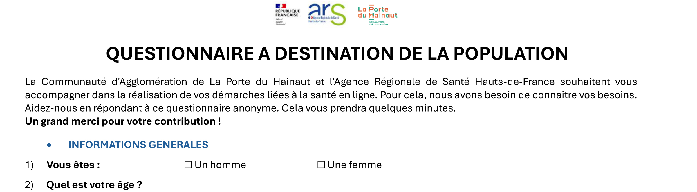 - Inclusion numérique focus santé - Questionnaire à la population - La Porte du Hainaut